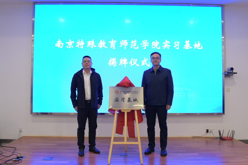 随后,赵小帆与高飞共同为“南京特殊教育师范学院实习基地”揭牌。此举标志着双方将共建稳定的学生实习通道,助力财务管理专业学生实现“在校学习—企业实践—就业衔接”的闭环培养。