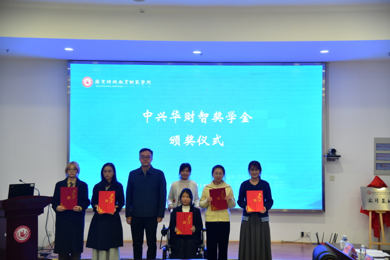 “中兴华财智奖学金”的颁发则为仪式注入温暖力量。高飞与李大胜共同为胡贝、柴米萱等10名财务管理专业优秀学生颁奖。该奖学金由中兴华会计师事务所江苏分所专项设立,用于激励财务管理专业学生勤奋学习、精进专业,同时也助力融合教育学生的成长与发展。