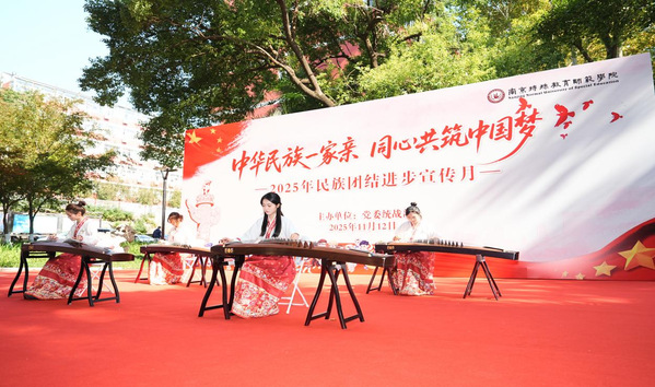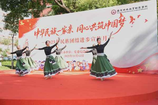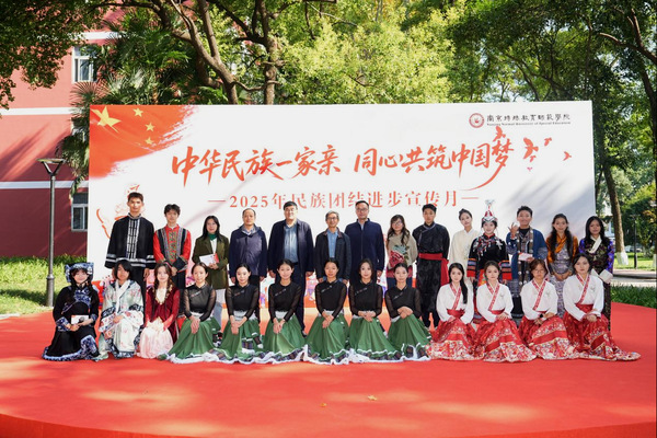 为深入学习贯彻党的二十届四中全会精神,深刻领会和把握习近平总书记关于加强和改进民族工作的重要思想,全面落实中央和省委民族工作会议精神,11月12日,南京特殊教育师范学院在学生活动广场举办2025年民族团结进步宣传月活动,学校各民族师生代表参加活动。