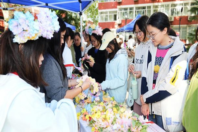 在中华民族优秀传统技艺体验区,活动融合专业特色和中华民族传统文化,以学生喜闻乐见的方式,设立了漆扇、簪花、水拓丝巾、中药香囊体验区和少数民族知识问答活动。从视觉观赏到动手体验,从实践操作到知识学习,全方位的体验设计,让每一位师生都能在活动中触摸民族文化,凝聚民族情感。现场人潮涌动,欢笑声、点赞声络绎不绝,氛围热烈活泼,获得了参与活动师生的一致好评。