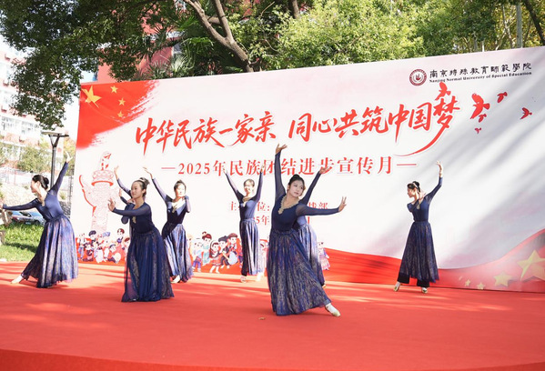 为深入学习贯彻党的二十届四中全会精神,深刻领会和把握习近平总书记关于加强和改进民族工作的重要思想,全面落实中央和省委民族工作会议精神,11月12日,南京特殊教育师范学院在学生活动广场举办2025年民族团结进步宣传月活动,学校各民族师生代表参加活动。