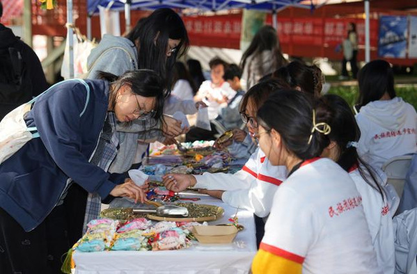在中华民族优秀传统技艺体验区,活动融合专业特色和中华民族传统文化,以学生喜闻乐见的方式,设立了漆扇、簪花、水拓丝巾、中药香囊体验区和少数民族知识问答活动。从视觉观赏到动手体验,从实践操作到知识学习,全方位的体验设计,让每一位师生都能在活动中触摸民族文化,凝聚民族情感。现场人潮涌动,欢笑声、点赞声络绎不绝,氛围热烈活泼,获得了参与活动师生的一致好评。
