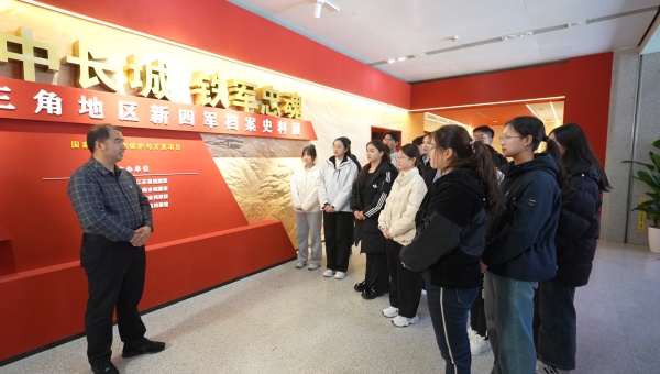 2025年11月19日,在中国人民抗日战争暨世界反法西斯战争胜利80周年的特殊历史节点,由南京特殊教育师范学院、江苏省档案馆、江苏省特殊教育师资培训中心联合主办,南京特殊教育师范学院马克思主义学院,江苏省档案馆资源开发处、技术保护处,南京特殊教育师范学院附属学校和南京市栖霞区特殊教育学校共同承办的特殊教育大中小学思政课一体化实践大课在江苏省档案馆举行,来自特殊教育师范院校的思政专业大学生和中学、小学学段的智障和自闭症学生。在江苏省档案馆“华中长城、铁军铸魂”大型档案史料展的浸润下,共同开启一场以“弘扬伟大抗战精神”为主题的沉浸式爱国主义教育。这不仅是特殊教育大中小学同上的一堂思政实践大课,更是一次连接过去与未来、知识与情感、理论与实践的特殊“精神对话”。